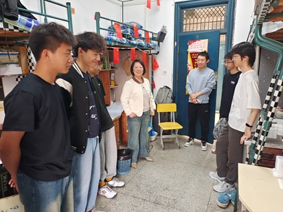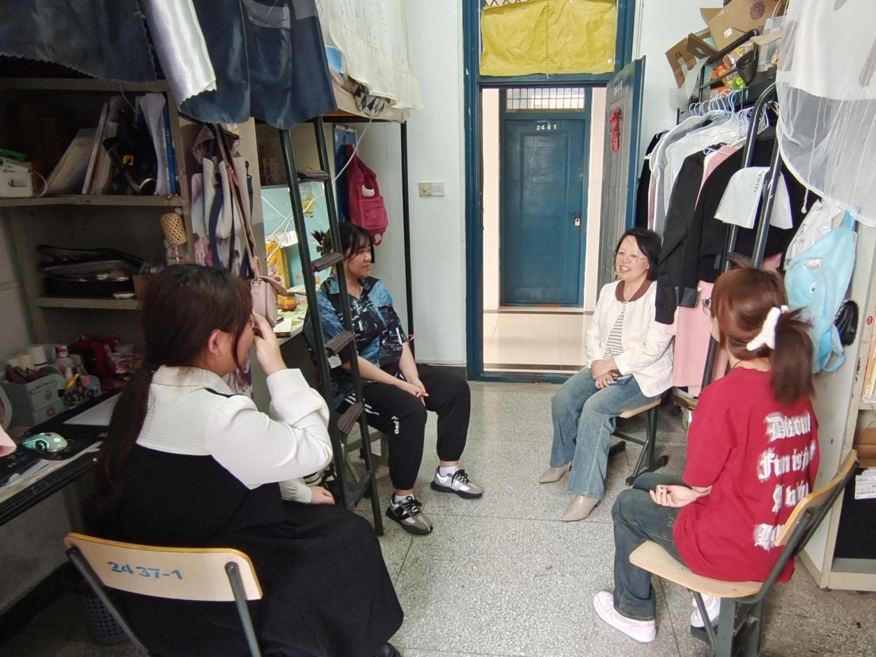 为进一步深入学生及时了解学生思想动态、关爱助力学生成长成才,同时强化、完善院级领导班子进基层服务工作机制,4月22日下午,beat365英国官网党总支副书记(主持工作)丁怡琴、副书记施芳芳带领部分辅导员老师深入学生宿舍,与学生面对面交流,了解学生的生活状况及学习情况,关注学生在宿舍中的安全问题。