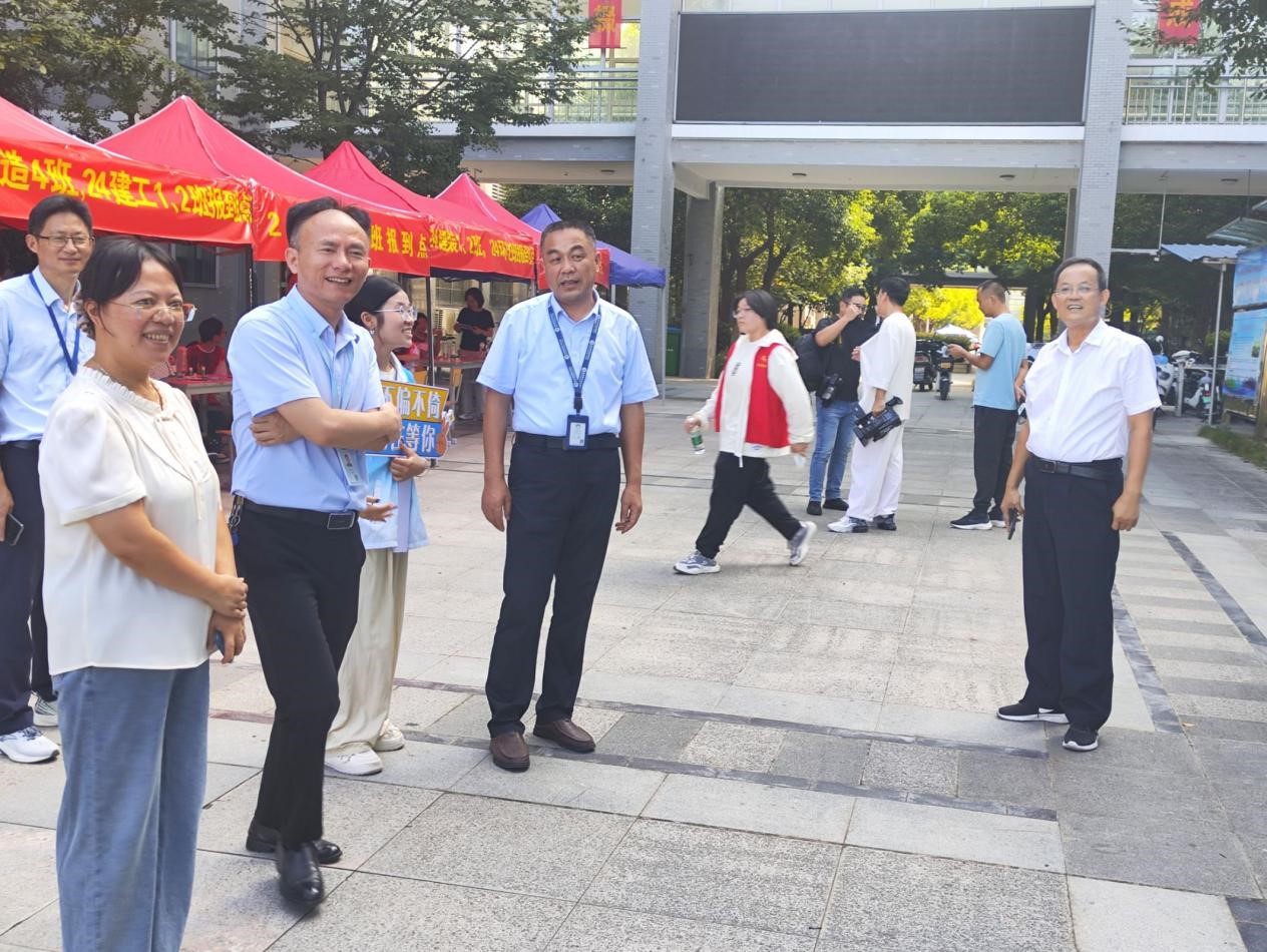 校长檀明、副校长范家茂、教务处处长窦红平、鼓山校区管委会主任谭连生一行深入迎新现场,与新生及家长话家常,鼓励新生尽快适应大学学习生活,实地了解报到实时进展情况和服务保障工作,檀明校长还亲笔写下对于beat365英国官网和新生的寄语和祝福。