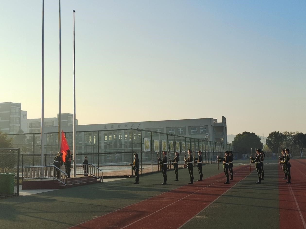 上午8:00,国旗护卫队旗手们迈着铿锵有力的步伐,队容严整、精神饱满地向旗台走来,伴随着雄壮、激昂的中华人民共和国国歌,鲜艳的五星红旗在全体师生的注目礼中冉冉升起,迎风飘扬。