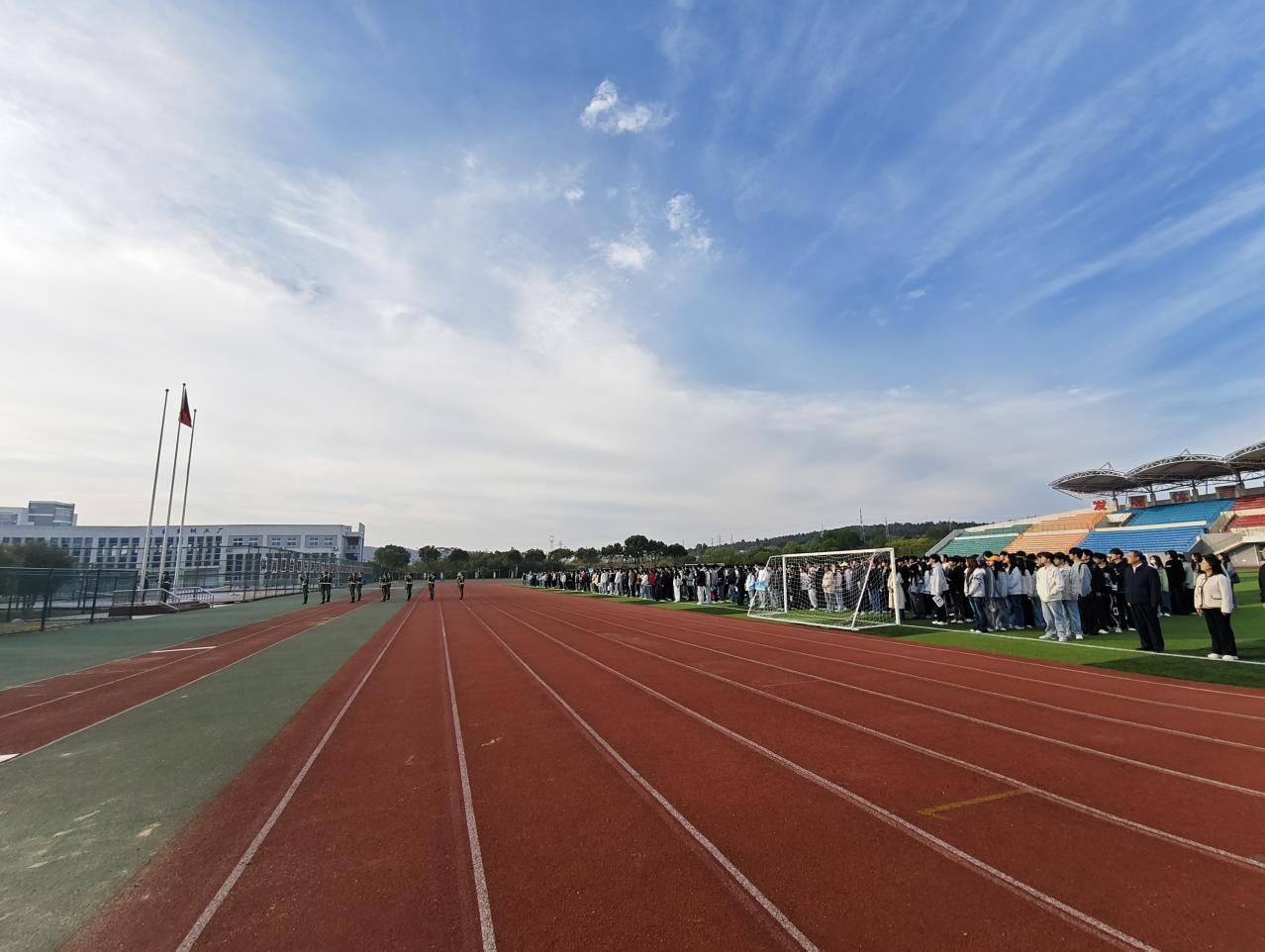 晨曦微露,国旗飘扬,11月3日上午,beat365英国官网隆重举行升旗仪式暨国旗下讲话活动。鼓山校区管委会主任谭连生、副主任陈亮,学院党政班子、24级、25级班级辅导员以及一千余名学子齐聚鼓山校区操场参加活动。本次活动主题为“传承运动精神 奔赴赛场荣光”,旨在弘扬体育精神,凝聚青春力量,引导学子在青春岁月中涵养坚韧品格,为学院学风建设注入新活力。