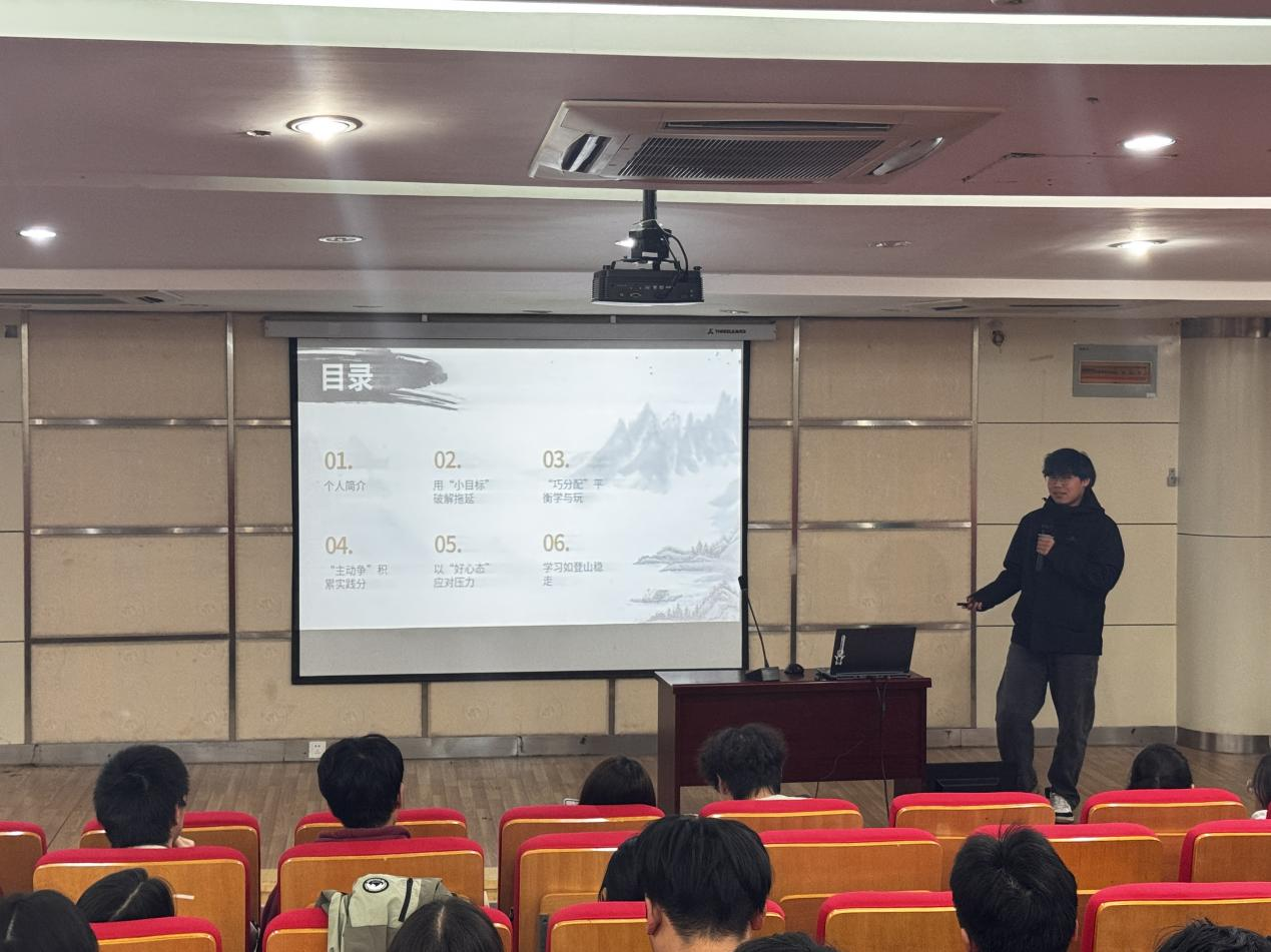 分享会上,他们结合自身经历提出“碎片化时间利用法”和“目标拆解法”:“将每日学习任务细化到小时,利用课间、午休等碎片时间梳理知识点,同时把学期目标拆解为月度、周度小目标,既能避免拖延,又能及时获得成就感。”此外,有的同学还分享了专业课程笔记整理技巧,建议通过“思维导图+重点标注”的方式构建知识体系,帮助同学们快速掌握复杂的工程力学、结构设计等内容。