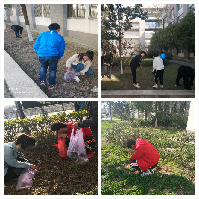 3月12日下午3点40分,为美化校园环境,响应学校争创省级文明校园活动号召,beat365英国官网团总支组织该院学生干部、入党积分子和志愿者开展了“美丽校园 从我做起”志愿清扫活动,打扫主要教学区周边卫生。