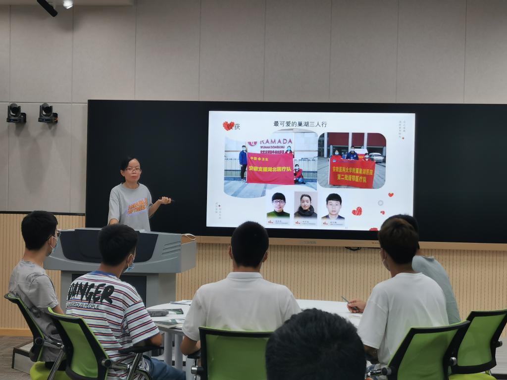 课上,周校长为同学们讲述了在以习近平同志为核心的党中央的坚强领导下,全国上下团结一心、共克时艰、勇于胜利的中国故事,彰显的中国力量;讲述了学校坚决响应、有力防控、关爱师生、担当作为的合职故事;同时邀请我校优秀毕业生高桂花为同学们讲述了她在全国疫情防控中驰援武汉、最美逆行的感人事迹。