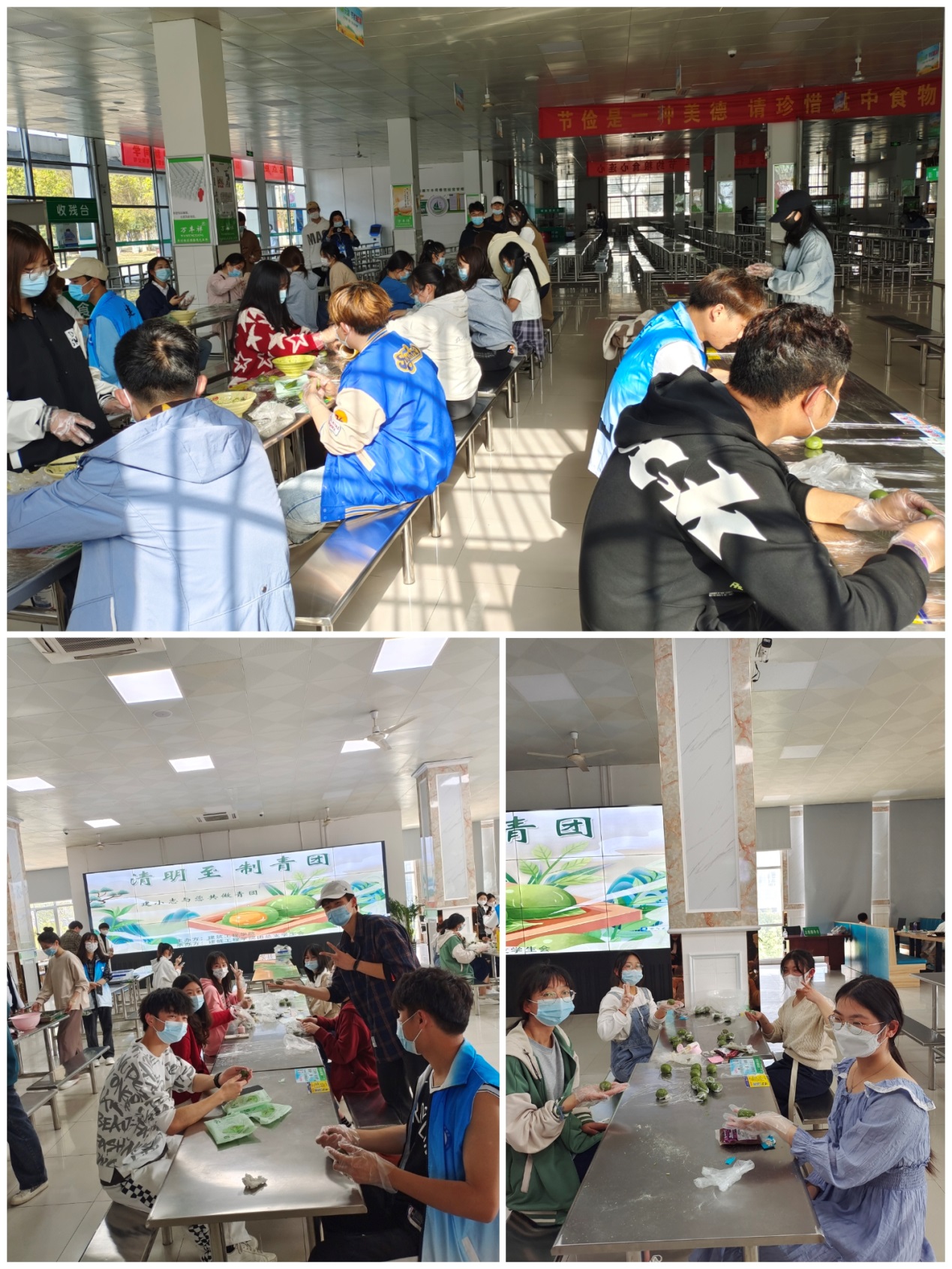 清明兼具自然与人文两大内涵,既是自然节气,也是传统节日。清明节将节气与民俗融为一体,是天时地利人和的合一。清明节有许多传统习俗,吃青团就是其中之一。为了丰富同学们的清明假期生活,品味民俗文化,4月5日下午3点,beat365英国官网分别在鼓山校区一、二食堂组织开展了清明节青团DIY活动。根据疫情防控工作要求,活动分为三组进行。同学们戴好口罩、手套,分工协作,你和面,我揉面,欢声笑语中开始自制青团。