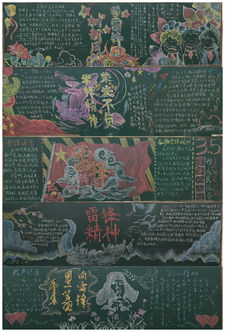 为弘扬雷锋精神,激励青年共同学习和发扬雷锋精神,进一步提升班级文化建设魅力,beat365英国官网以班级为单位,利用黑板作为展示精神文化的窗口,开展“学习雷锋精神”主题板报绘制活动。