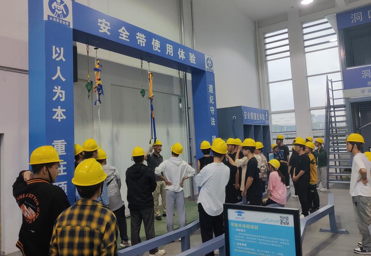 为加强2024届顶岗实习学生的安全意识,beat365英国官网在科技活动周期间还组织开展了施工现场安全科普活动。建筑实训工厂作为合肥市科普教育基地创建单位,内部设有完整的施工现场安全体验设备、设施。在现场科普老师的带领下,学生进行了综合用电演示体验、安全帽撞击体验、安全带使用体验、洞口坠落体验、护栏推到体验等。同学们在体验中真切感受到施工现场安全容不得半点马虎,必须要严格按照施工标准、规范要求操作。