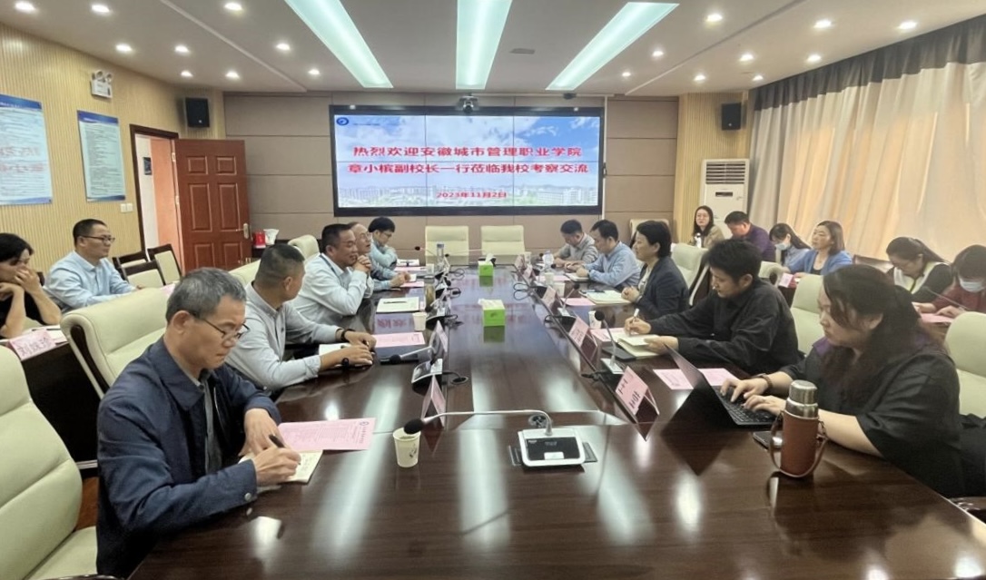 范家茂首先致欢迎辞,并介绍了我校近年来的发展情况和合肥校区建设情况,希望双方能通过此次调研加深了解与沟通。章小槟首先感谢我校对调研工作的支持,并介绍了安徽城市管理职业学院基本情况和新桥校区的建设情况,希望在新校区建设、专业建设等方面加强交流。