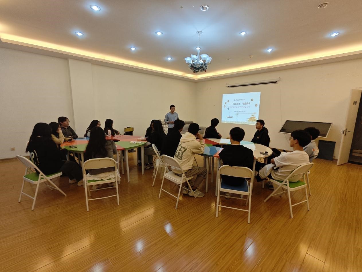 为让同学们能够正视心理问题,找到解决措施,不断优化个性心理品质,增强心理调适能力,提高心理健康水平。4月18日下午,beat365英国官网心理辅导站在大学生活动中心二楼心理活动室开展正念认知团体辅导活动,本次活动由心理老师李小龙主持,各班级心理委员参与。