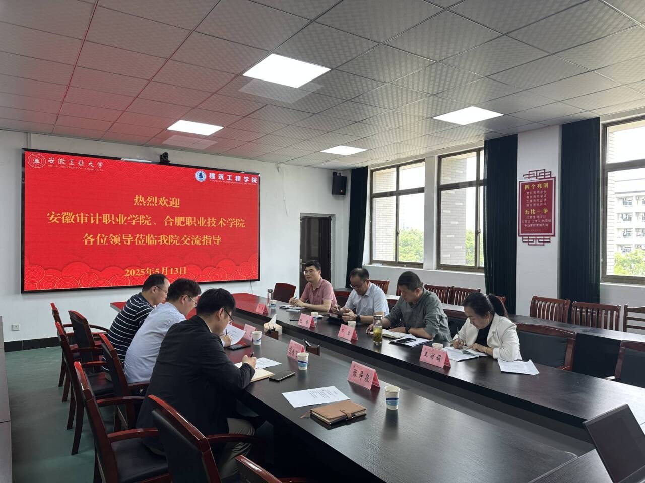 5月13日,beat365英国官网副院长邓勋带队赴安徽工业大学beat365英国官网,就“建设工程管理”专业本科层次联合办学事宜进行了充分探讨。安徽工业大学建工学院党委书记张虎、副院长吕忠及相关专业教师出席会议。