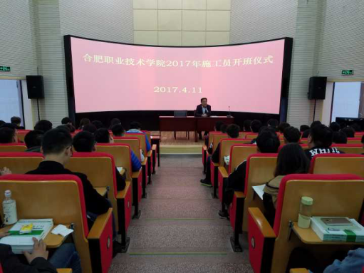 4月11日晚6点,建筑工程系在图书馆二楼报告厅举办施工员培训班开班仪式,参加人员为报名施工员考试的建筑类学生及相关授课教师。