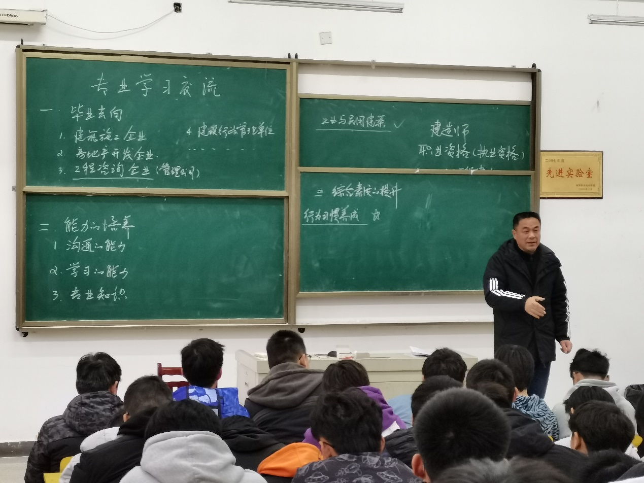 范家茂从建设工程管理专业学生的毕业去向、所需能力和综合素质培养等方面一一向同学们进行了详细的介绍。他结合自身的工作经历,采用风趣、幽默又富有哲理的讲解方式,为同学们今后的择业指明了方向,也为同学们在校学习理清了思路,还增强了同学们好好学习的信心。最后他还对同学们提出的就业、升学等问题进行了耐心细致的回答。本次交流讲座在一片欢声笑语和掌声中结束。