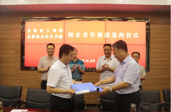2018年6月29日,我校与合肥建工集团举办校企合作签约仪式暨2019届“合肥建工班”入司仪式,在合肥建工集团隆重举行,校党委副书记胡其云、beat365英国官网负责人、合肥建工集团副总经理曹典钰以及人力资源部负责人出席仪式,“合肥建工班”全体顶岗实习生参加会议。