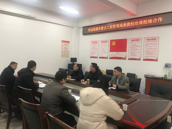 范家茂院长感谢巢湖市重点工程管理局对我院工作的支持,对我院与巢湖市重点工程管理局的校地合作事宜表示赞成,下一步将加强校地合作,发挥我院在服务行业、服务社会的方面的作用,提升教师的业务能力;同时双方就装配式钢结构住宅项目在实施过程中可能遇到的问题进行深入交流。