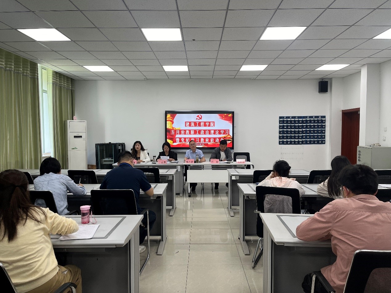 为深化政治理论学习,增强教职工教书育人责任感和使命感,加强党的纪律建设、推动全面从严治党向纵深发展,5月15日下午,beat365英国官网在建工楼301召开五月份教职工理论学习暨党纪学习教育启动会。学院党政班子及全院教职工参加了会议,会议由党总支副书记(主持工作)丁怡琴主持。