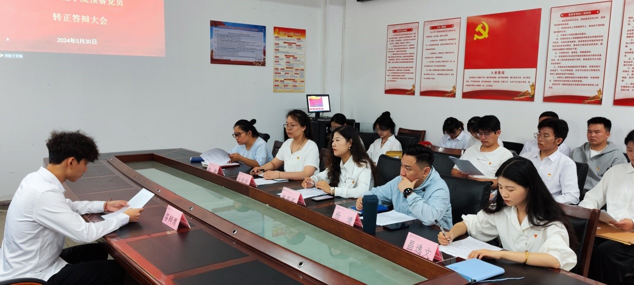 答辩会按照答辩陈述、现场提问和现场点评三个环节依次开展。首先,学生预备党员依次围绕个人情况、入党动机或预备期表现、模范带头作用、不足和改进之处进行答辩陈述。随后,答辩考评小组成员先后从党的基本理论、自身发展等方面对预备党员进行提问,各位预备党员也在充分准备和思考后对所提问题做出回答。最后,答辩考评小组成员对即将转正的预备党员就预备期的综合表现进行了点评,同时对每个人的不足之处提出了宝贵建议,拟转正预备党员都虚心接纳并表示日后定会改正。