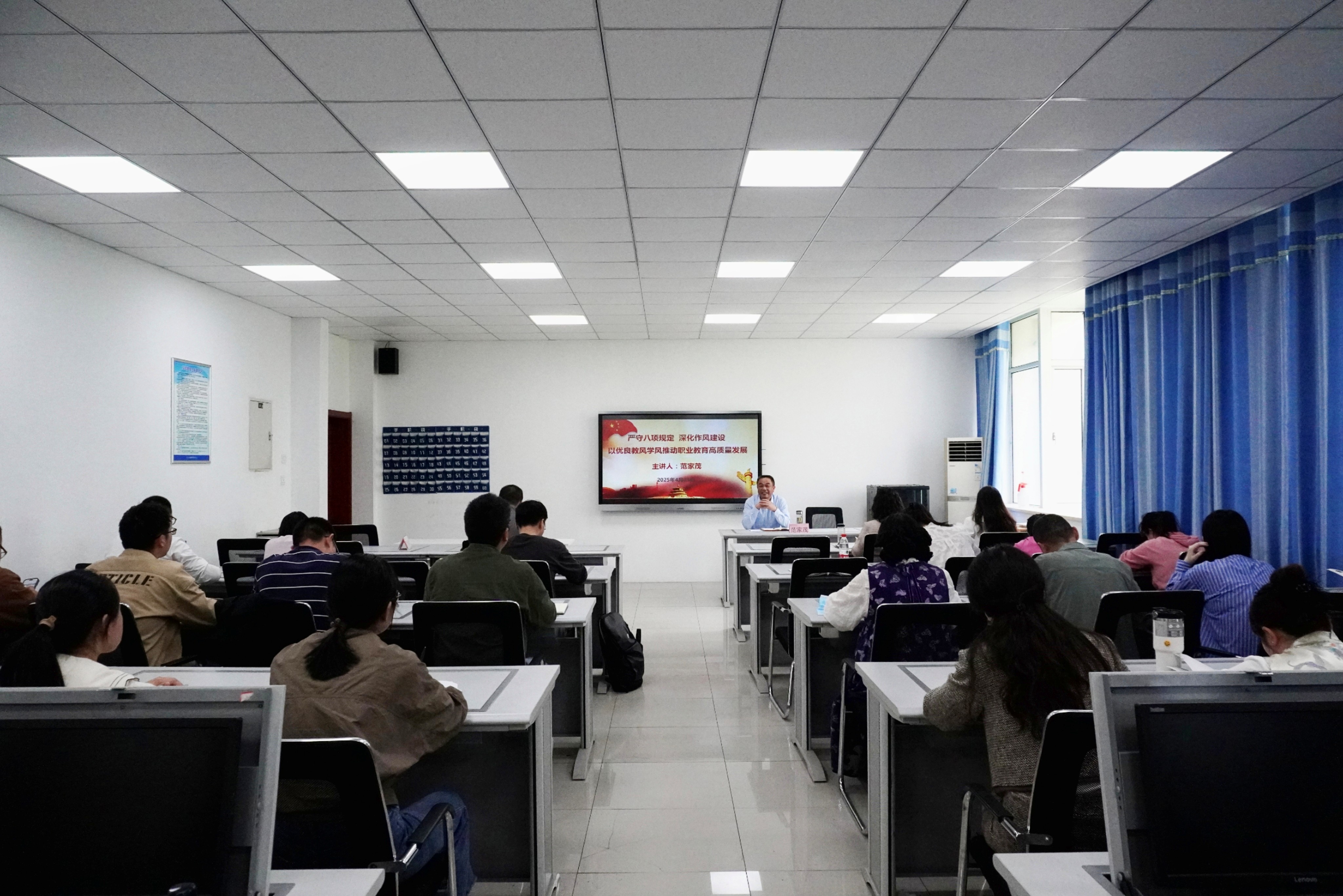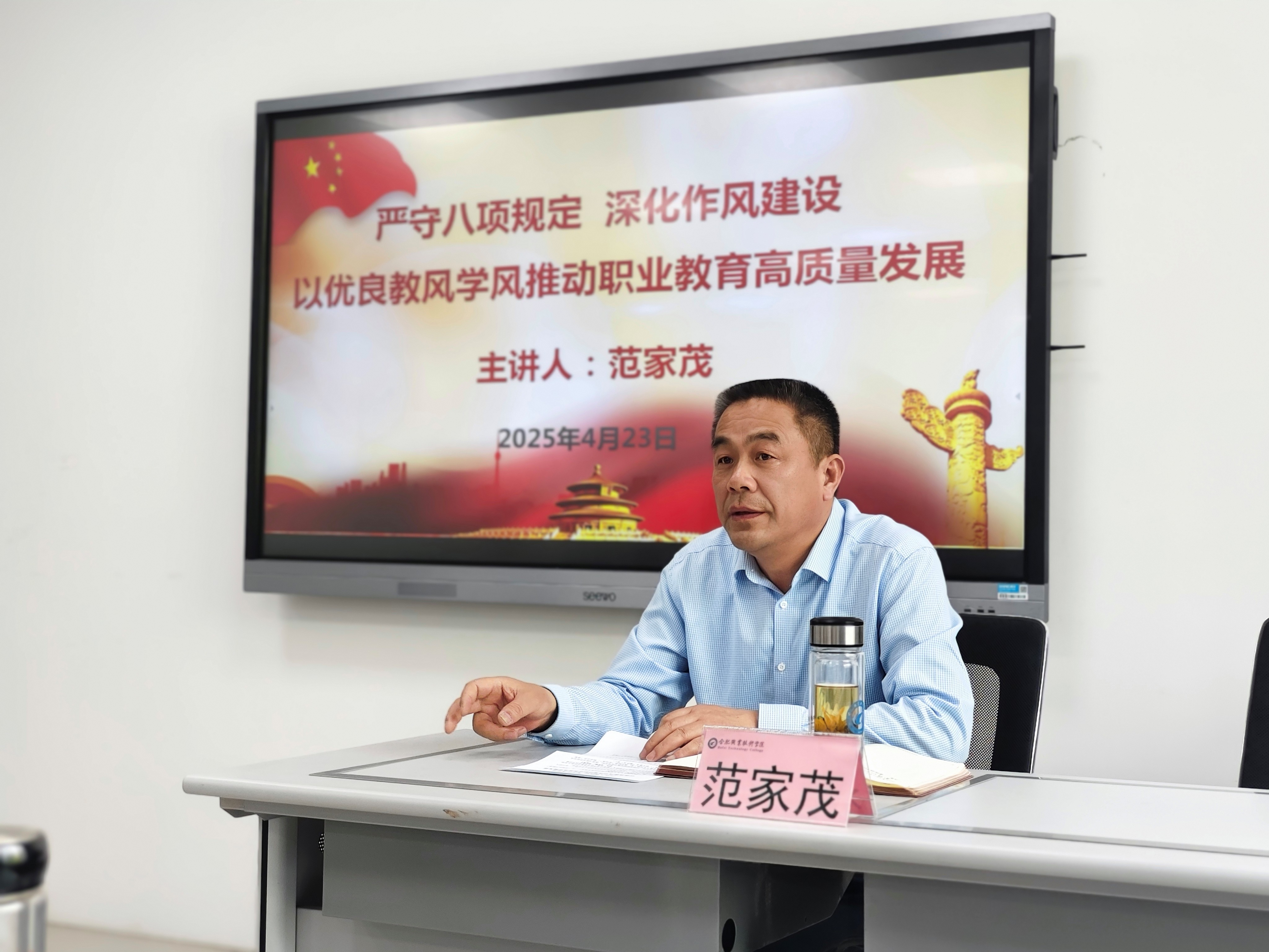 为推动深入贯彻中央八项规定精神学习教育走深走实,持续深化作风建设,推进全面从严治党,4月23日下午,校党委委员、副校长范家茂以《严守八项规定 深化作风建设 以优良教风学风推动职业教育高质量发展》为题,为beat365英国官网全体教职工讲授深入贯彻中央八项规定精神专题党课。