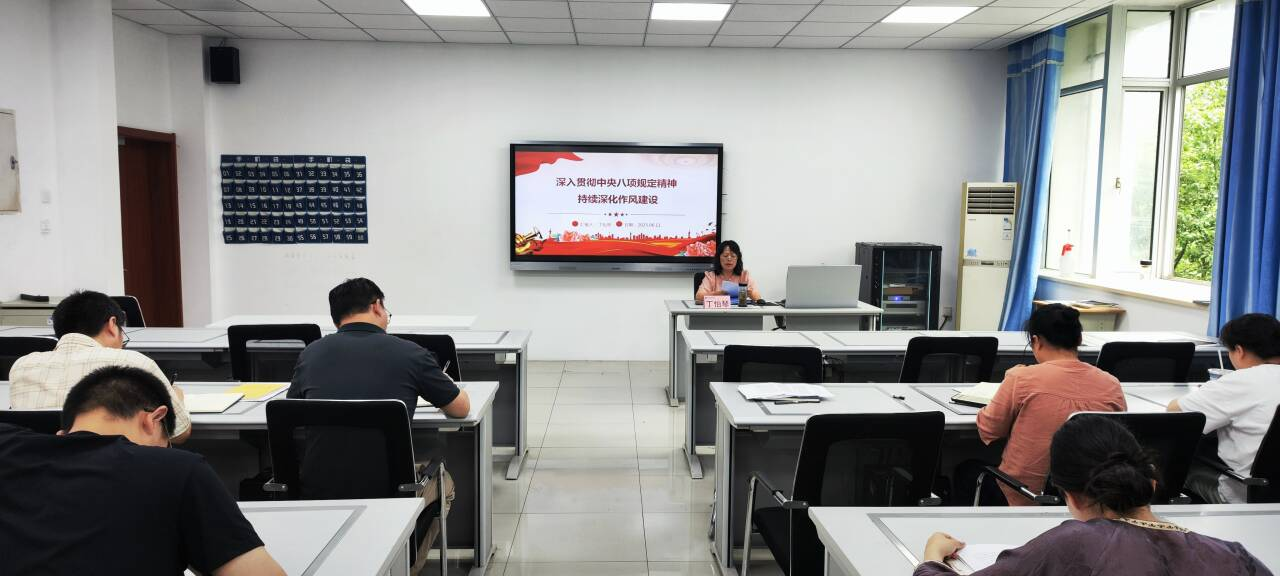为深入学习贯彻习近平总书记关于加强党的作风建设的重要论述精神,全面落实中央八项规定及其实施细则精神,认真落实中央指导组工作座谈会精神、省委常委会会议精神及市委常委会会议精神,6月11日下午,beat365英国官网在建工楼304会议室召开六月份教职工政治理论学习暨深入贯彻中央八项规定精神学习教育会议,学院全体教职工参加会议,会议由学院党总支副书记(主持工作)丁怡琴主持。