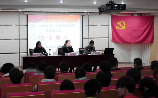 12月5日下午3:50在校图书馆1楼报告厅,举行了beat365英国官网第2期业余党校“学十九大精神争做合格党员”专题培训班结业典礼。学院有关负责人、教师党员代表及第2期业余党校学员参加了结业典礼,典礼由党总支副书记王文俊同志主持。