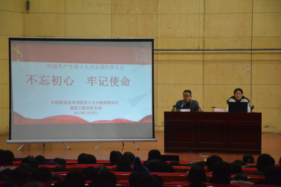 按照学校要求,本次讲座主要有五个部分内容:第一部分为党的十九大beat365官网;第二部分为十九大报告重点内容解读;第三部分为青年兴则国家兴,青年强则国家强;第四部分为砥砺奋进的合职;第五部分为稳中求进的合职建工。