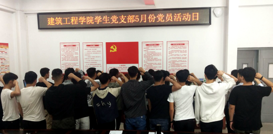 最后,与会全体学生党员在支部宣传委员杨靖同志的带领下,向着党旗庄严宣誓,立志永远听党话,跟党走。无论在何时、无论在何方,我心永远向党!