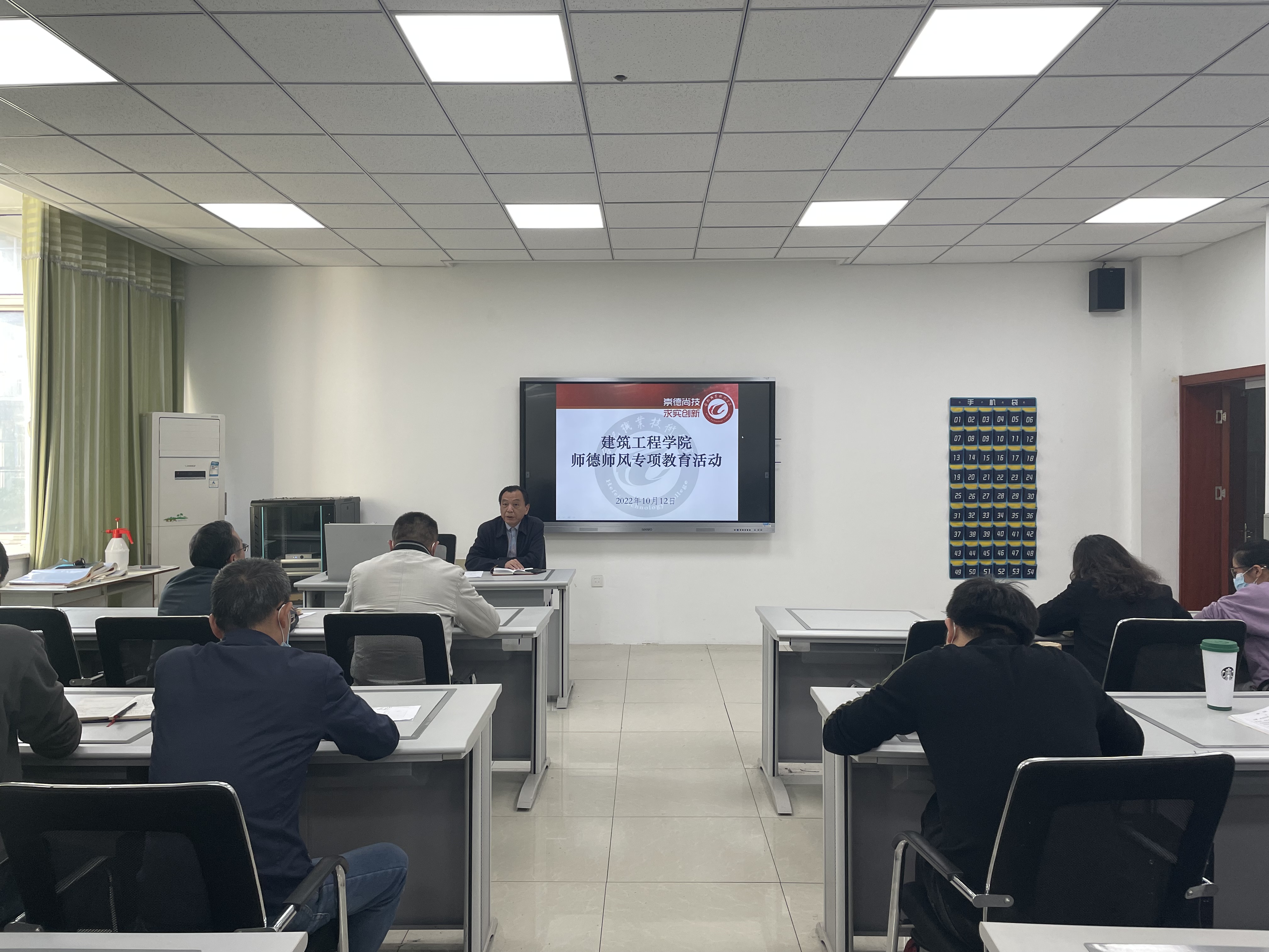 根据校党委统一安排部署,结合我院工作实际,10月12日下午,beat365英国官网党总支在建工楼301开展十月份党员活动日暨师德师风专项教育活动,全院教职工参加了会议,活动由党总支书记宁业群主持。