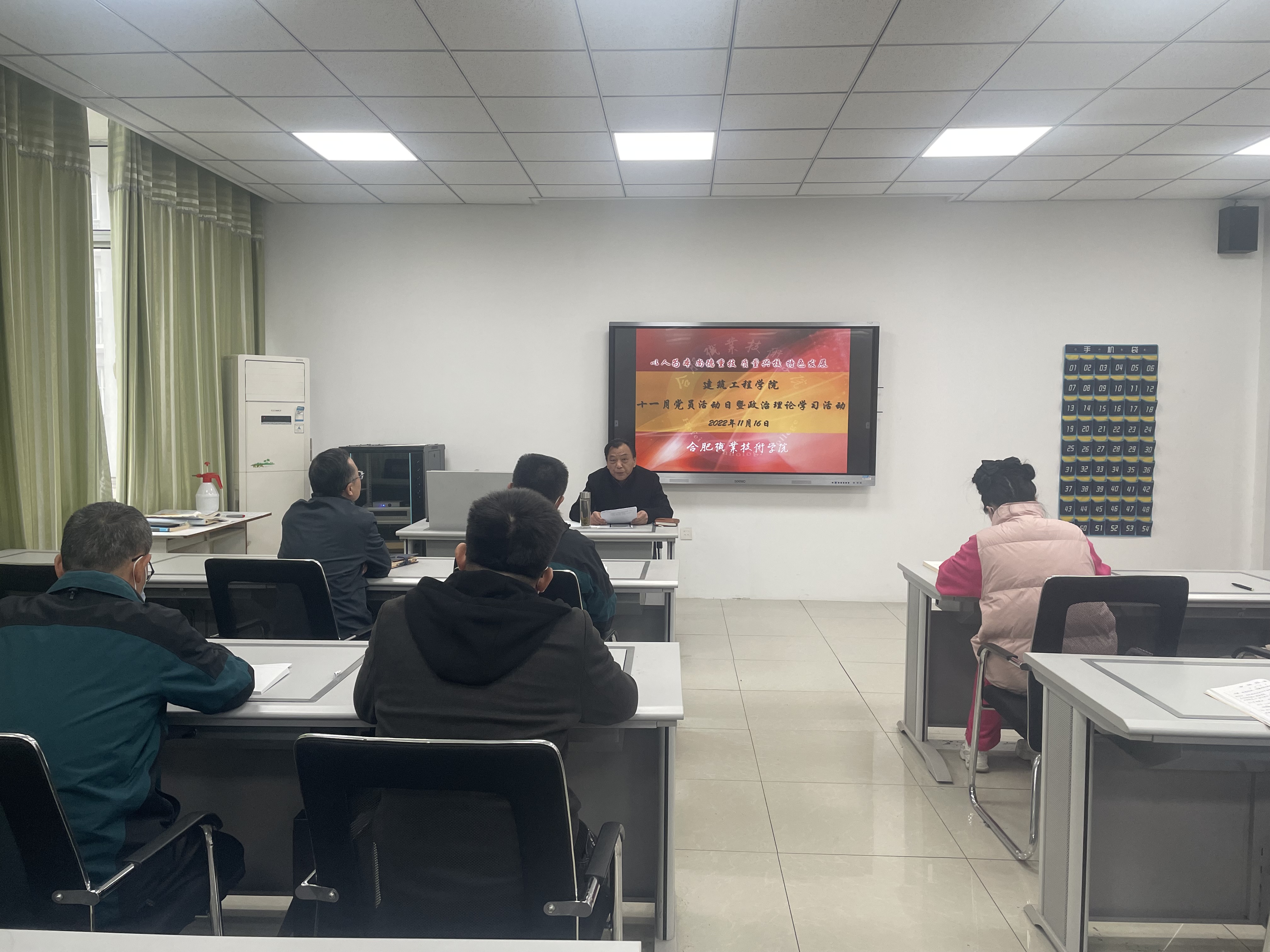 根据校党委统一安排部署,结合我院工作实际,11月17日下午,beat365英国官网党总支在建工楼301开展十一月份党员活动日暨教职工政治理论学习活动,全院教职工参加了会议,活动由党总支书记宁业群主持。