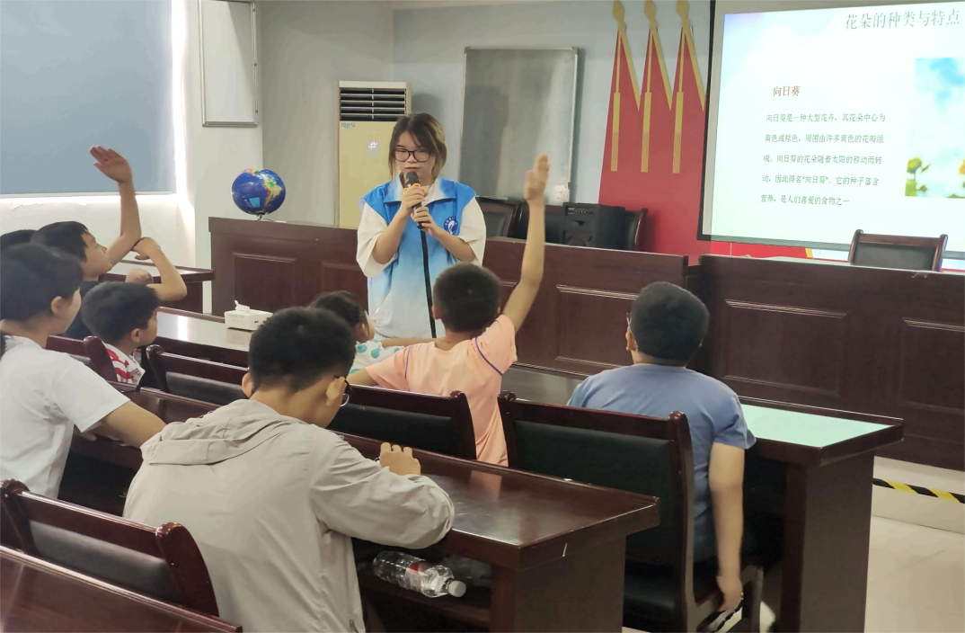 在安全教育的防溺水和防震减灾课堂上,队员们通过图片和文字,从远离野外危险水域、安全戏水、课堂小测试和发生溺水该如何施救等方面,普及地震安全逃离知识,同时通过模拟心肺复苏和防震演练等,进一步巩固孩子们所学的知识,现场气氛欢快热烈;在建筑科普课堂上,队员们结合自己的专业特色用丰富幽默、通俗易懂的语言,带领孩子们了解建筑结构以及世界优秀建筑,拓展孩子们的知识圈;在漆扇制作课堂上,孩子们聚精会神地听着队员们的讲解,动手制作出一幅幅独一无二的“多彩扇面”,深入感受非遗漆画的魅力,进一步增强了他们的民族自豪感和文化认同感。