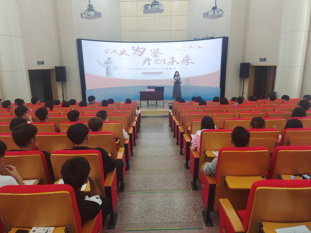 活动分两阶段进行。首先,我院昌逸文老师为同学们带来了一场精彩的主题讲座。昌老师以学习习近平总书记在纪念辛亥革命110周年大会上的讲话精神为中心,从三个方面和同学们分享了她的思考和感悟:一、辛亥革命对于国家、民族乃至每一个普通人的意义是什么;二、辛亥革命体现的民族精神、需要新时代青年人传承的精神有哪些;三、回望历史,发扬孙中山先生等辛亥革命先驱的伟大精神,携手向着中华民族伟大复兴的目标继续奋勇前进是新时代青年人的历史使命。