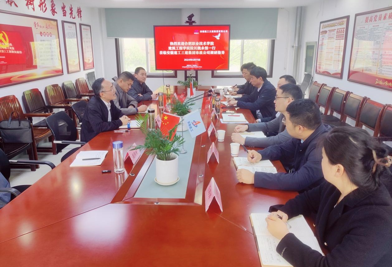 为全面了解企业用人需求,开拓更多就业岗位,助力学生高质量就业,4月11日,beat365英国官网副院长(主持工作)魏永恒、副院长邓勋、教学办主任胡秀俊、工程造价教研室主任黄军福一行四人前往安徽建工三建集团市政公司开展访企拓岗活动。安徽建工三建集团市政公司经理王寅生、书记刘德连、副经理姚平、副经理洪文及相关部门负责人参加交流研讨。