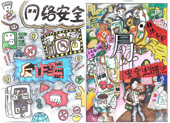 本次活动通过邀请同学们自己设计和绘制预防诈骗的主题海报,使学生们在作品准备时,自觉主动的去搜集资料,学习更多反诈知识。同时,也拓展了开展防诈教育的方式方法,从单一的“老师讲学生听”变成“学生画学生看”,让防诈宣传教育既有“大张旗鼓”,也有“润物无声”,从而提升教育实效,进一步推动了“平安校园”的建设。(供稿:昌逸文 初审:施芳芳 审核:丁怡琴)