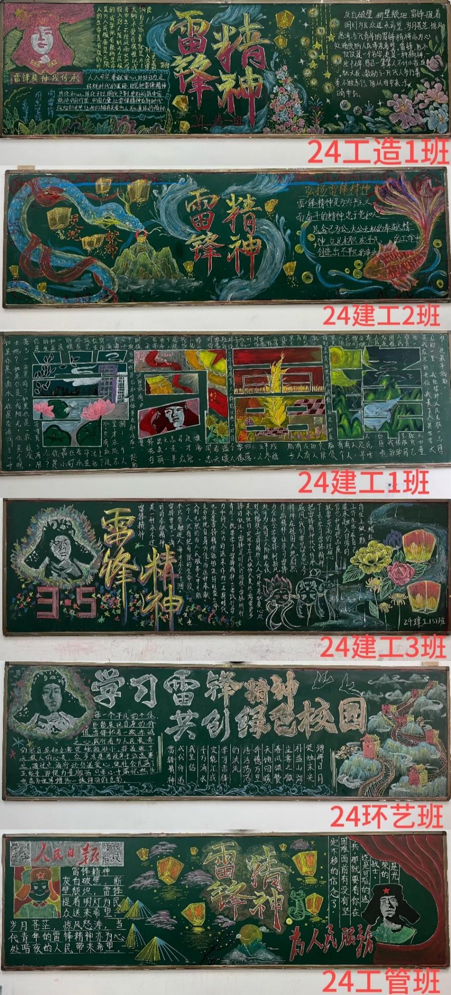 15个代管班级积极参与,通过创意设计和艺术表达,生动诠释新时代雷锋精神的深刻内涵,展现新时代大学生对雷锋精神的理解和传承。活动中,同学们拿起粉笔,挥洒创意。一幅幅内容丰富、形式多样的黑板报作品跃然眼前。有的作品以雷锋的生平事迹为线索,讲述了他无私奉献、乐于助人的感人故事;有的作品则聚焦于雷锋精神在当代社会的传承与发展,展现了新时代青年对雷锋精神的深刻理解和积极践行;还有的作品通过生动的漫画和活泼的标语,呼吁大家从身边小事做起,共同树立社会新风。